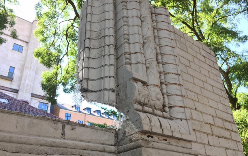Studerende på Kunstakademiet Adam Fenton, Siska Jørgensen og nu dimitterede Veronica Rigét, og lektor Franco Turchi har støbt en næsten 200 kg tung skulptur, som er en reproduktion af Charlottenborg Slots facade, og fragtet den tværs over Danmark til den udendørs skulpturpark Skovsnogen.
