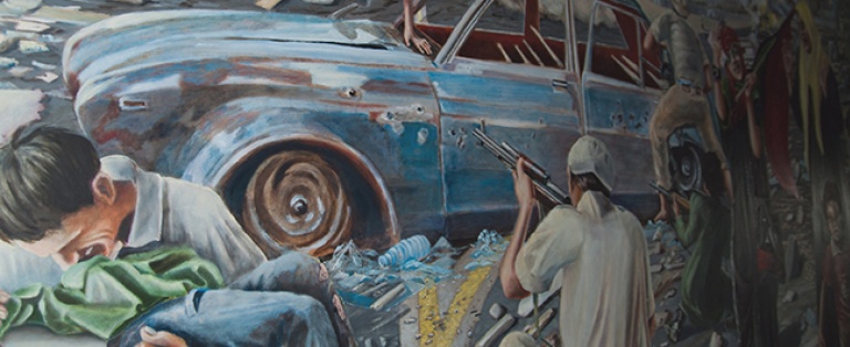 Simone Aaberg Kærn tager favntag med krigskunsten, når vi fra begyndelsen af oktober præsenterer udstillingen Batalje. Kærn, der tidligere har stået bag et meget omdiskuteret portræt af tidligere statsminister Anders Fogh Rasmussen, der bragte krigen ind på Christiansborg, har til udstillingen skabt et syv meter langt og tredelt bataljemaleri af den danske indsats i Libyen. I udstillingen indgår også en kontroversiel skitse til en tidligere version af maleriet, som blev afvist af Det Nationalhistoriske Museum, der oprindeligt havde bestilt billedet, med henvisning til udtalelser fra en generalmajor i Forsvarsministeriet.
