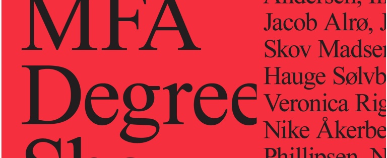 On request of the artists, Christian Skovbjerg Jensen has been appointed to curate the MFA Degree Show. Christian Skovbjerg Jensen is a strong profile in the Nordic art scene and has wide experience with curating and art communication. Skovbjerg Jensen is director of Inter Arts Center in Malmö and has previously curated major exhibition projects like Tumultog Momentum biennale and parts of the Copenhagen Art Festival in 2012.